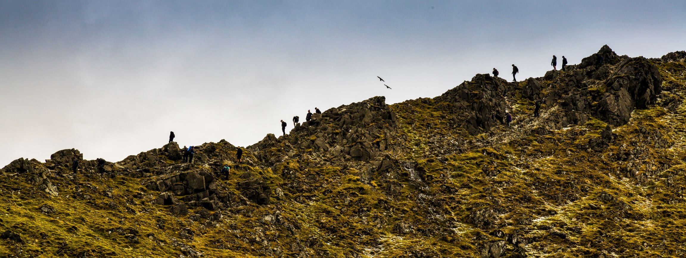 Alternative responses to this experiment could include: (a) setting up a videocam at the col between Catstycam and Helvellyn and recording people’s movements from sunrise to sunset (to be played on a speeded up loop); (b) having fun with wordplay, by playing around with the saying ‘there wasn’t even room to swing a cat(stycam)’; or (c) choosing a (busy) spot from which to take photographs and write down notes, and superimposing the images and words over each other to gain a sense of the incessant passing traffic.