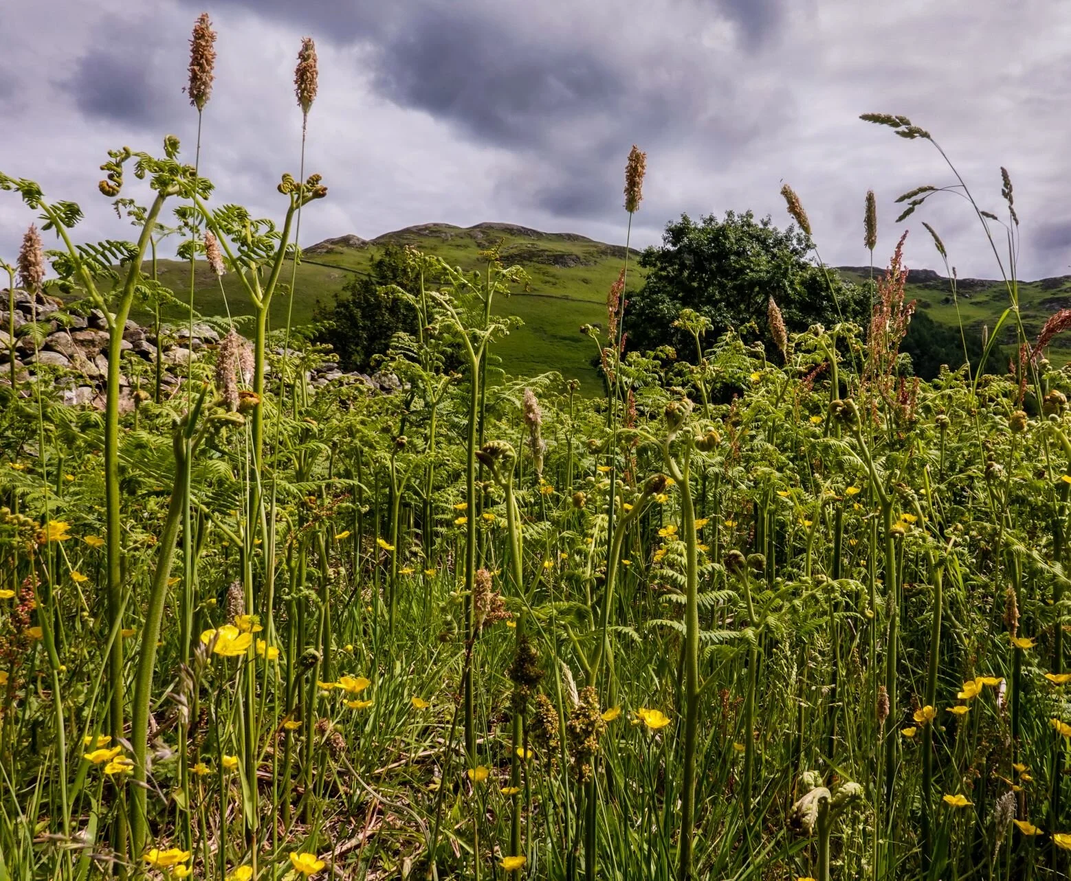 The above Turner painting, which provides the starting point for this experiment, presents an idealised pastoral scene, set amidst dramatic mountain scenery. In other words, Turner’s response to the landscape is, typically for the Romantic era, an emotional rather than a documentary one: a nostalgic perspective of rural life is placed within the context of the sublime. The extent to which the ‘drama’ of the mountains has been exaggerated is illustrated by the below image. The mountains are smaller in real life, and far less rugged (in fact more in keeping with the human scale to which it provides the backdrop)…Turner painted ‘Ullswater from Gowbarrow Fell’ not far from the scene which inspired Wordsworth’s poem ‘I Wandered Lonely as a Cloud’.