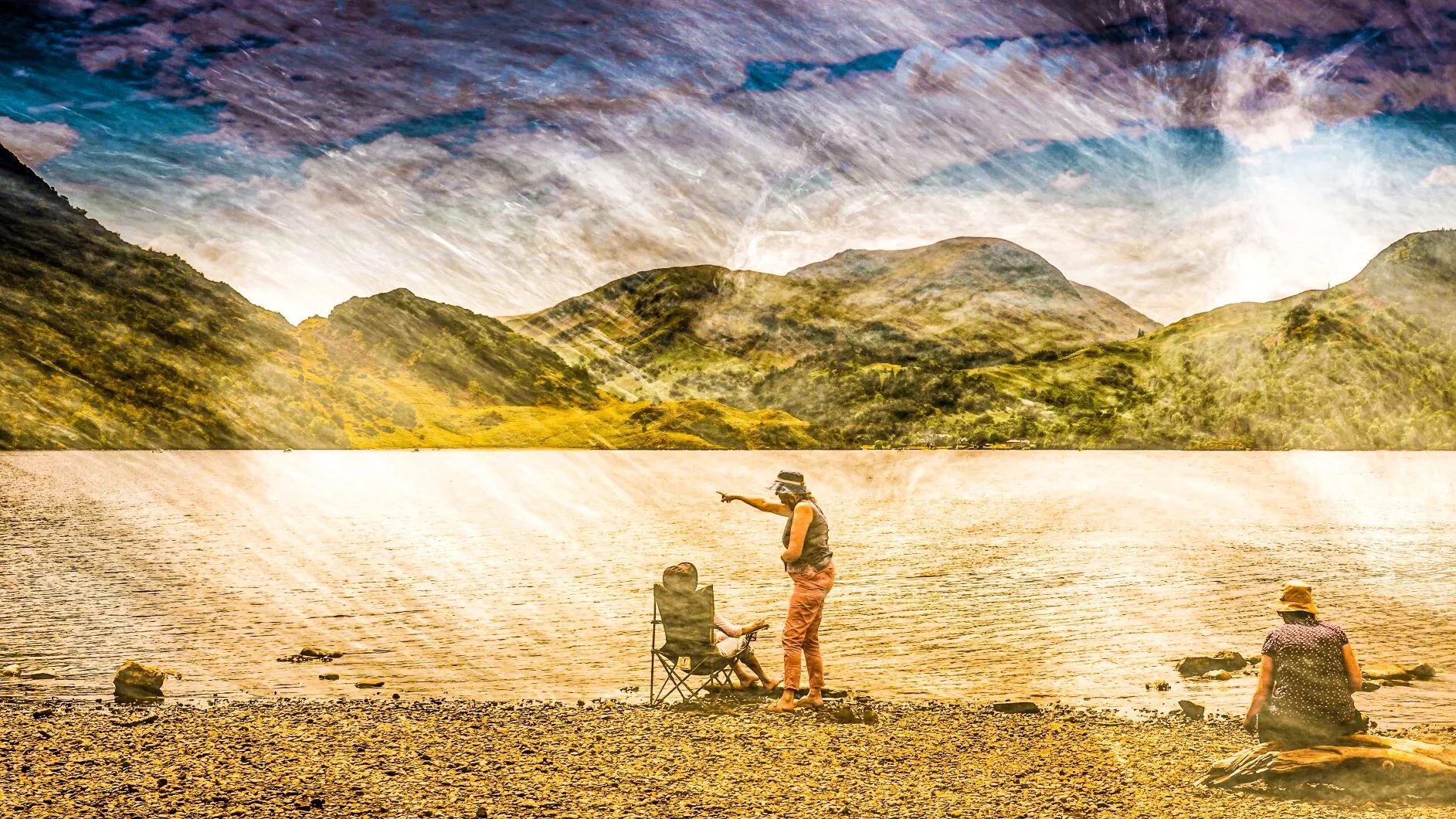 The scene in ‘Ullswater from Gowbarrow Park’ most closely resembles that from Aira Green (just across the road from the Aira Force tearoom / car park) by the Ullswater Steamer pier; I propose you create your ‘re-staging’ here. The aim is for your own modern day version of the scene (painting, drawing, photo) to resemble Turner’s painting as closely as possible, but to update it. What might you find in the foreground of your pic which might replace Turner’s cows and fisherman? And are there any contemporary techniques you could use which speak to Turner, but are decidedly 21st century? In my own photographic responses (below) I filtered the pics through images of water (in Aira Force) to achieve a contemporary ‘watercolour’ effect!